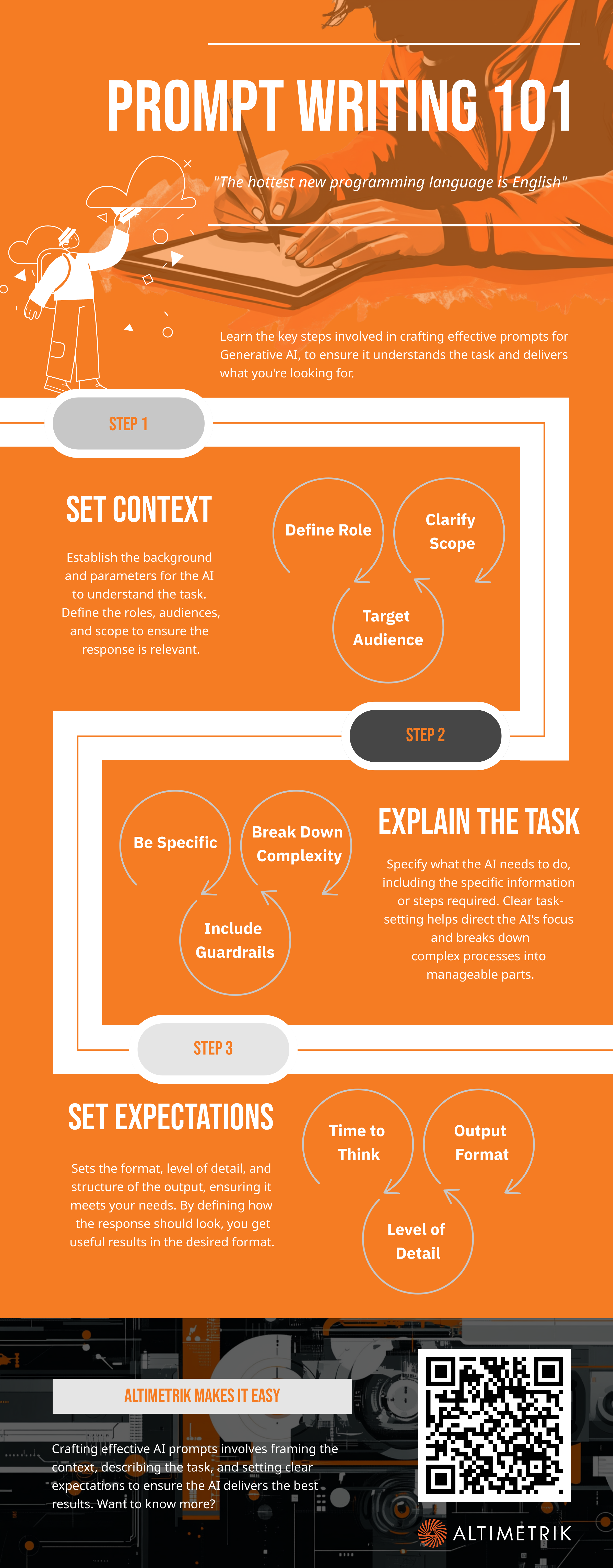 The principles outlined in the Altimetrik Prompt Writing Worksheet are not just for AI professionals. They empower anyone—marketers, analysts, developers—to leverage AI effectively. By framing prompts with precision, you create a feedback loop where the AI becomes a trusted partner, producing results that align with your business objectives.